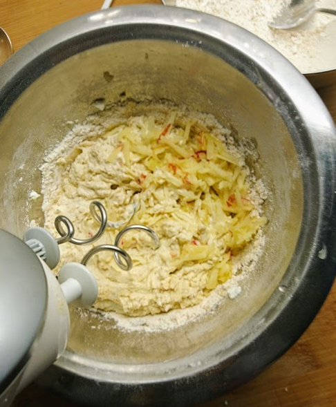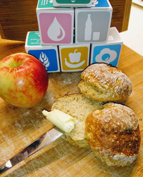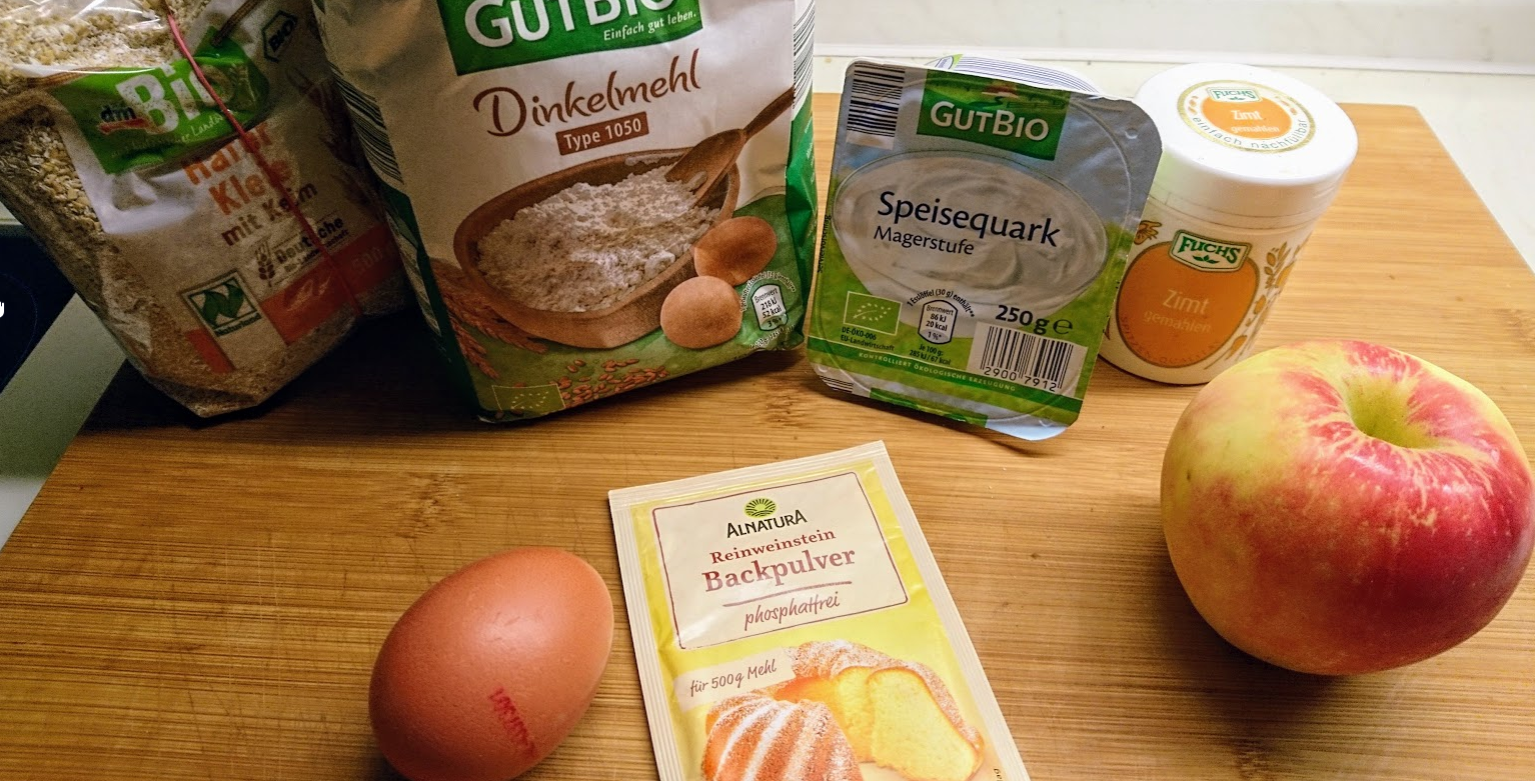 Zutaten für 8 Brötchen: 250 g Dinkelmehl Typ 1050, 50 g Haferkleie, 1 Pck. Weinsteinbackpuler bei Histaminintoleranz oder Backpulver, 1 Ei, 250 g Magerquark (Bei Laktoseintoleranz laktosefrei), 2 EL Keimöl oder Rapsöl, ½ TL Salz, etwas Zimt, 100 g Apfel